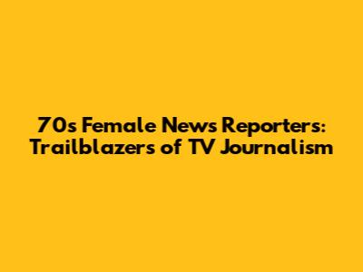 70s Female News Reporters: Trailblazers Of TV Journalism