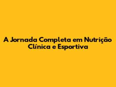 A Jornada Completa Em Nutrição Clínica E Esportiva