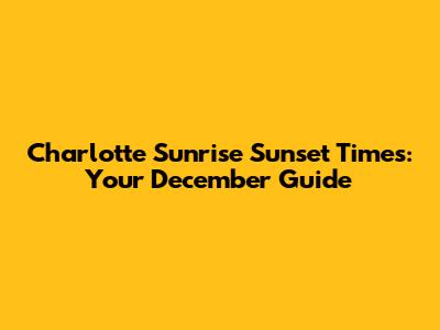 Hey guys! If you're anything like me, you're probably fascinated by the changing times of sunrise and sunset, especially as we head into the cooler months. December in Charlotte, North Carolina, is a unique time of year, with its own special daylight hours. So, let's dive into everything you need to know about sunrise and sunset times in Charlotte during December. Whether you're planning a cozy winter gathering, scheduling outdoor activities, or simply curious about the celestial dance, this guide has got you covered. Understanding these times can help you make the most of your day, so let's get started!