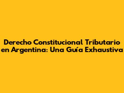 La Constitución Argentina y el Derecho Tributario (The Argentine Constitution and Tax Law)