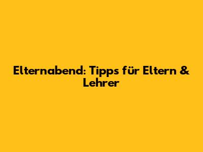 Elternabend: Tipps Für Eltern & Lehrer
