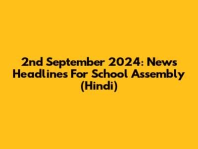 2nd September 2024: News Headlines For School Assembly (Hindi)