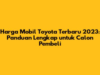 Harga mobil Toyota terbaru 2023 bervariasi tergantung model dan variannya. Toyota menawarkan beragam pilihan model yang bisa disesuaikan dengan kebutuhan dan anggaran Anda. Sebelum memutuskan untuk membeli, lakukan riset mendalam dan pertimbangkan faktor-faktor seperti kebutuhan ruang, gaya berkendara, dan fitur-fitur yang Anda butuhkan. Manfaatkan promo dan penawaran menarik dari dealer Toyota untuk mendapatkan harga terbaik. Dengan mempertimbangkan tips di atas, Anda bisa mendapatkan mobil Toyota impian Anda dengan harga yang sesuai.