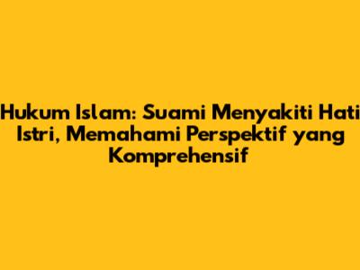 Hukum Islam mengenai suami yang menyakiti hati istri adalah topik yang sangat penting untuk dipahami oleh setiap pasangan Muslim. Dalam Islam, pernikahan bukan hanya ikatan lahiriah, tetapi juga ikatan batiniah yang mendalam. Tujuan utama pernikahan adalah menciptakan ketenangan, kasih sayang, dan keharmonisan dalam keluarga. Ketika seorang suami menyakiti hati istrinya, hal ini tidak hanya melanggar nilai-nilai moral dan etika Islam, tetapi juga dapat merusak fondasi pernikahan itu sendiri. Mari kita kupas tuntas berbagai aspek terkait dengan hukum Islam dalam konteks ini, serta bagaimana seharusnya sikap seorang Muslim dalam menghadapi situasi tersebut.