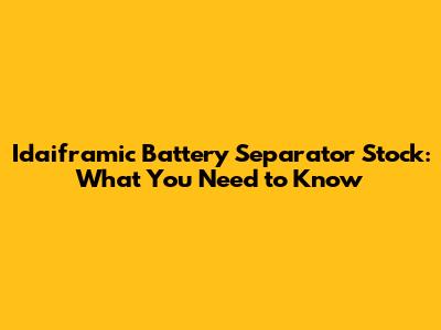 Idaiframic Battery Separator Stock: What You Need To Know