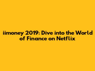 Iimoney 2019: Watch The Full Movie On Netflix