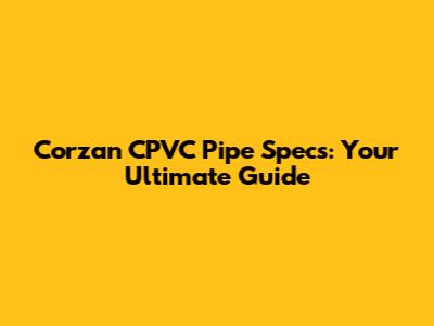 Corzan CPVC Pipe Specs: Your Ultimate Guide