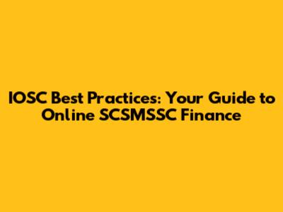 IOSC Best Practices: Your Guide To Online SCSMSSC Finance