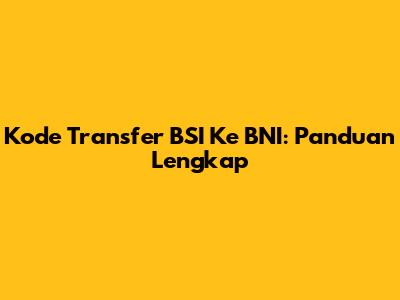 Kode Transfer BSI Ke BNI: Panduan Lengkap