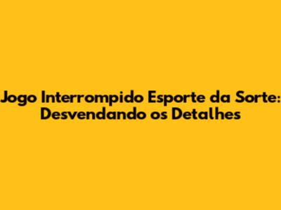 Olá, pessoal! Se você é fã de esportes e adora dar aquela "esticada" no palpite com a Esporte da Sorte, com certeza já se deparou com a situação de um jogo interrompido. Mas, afinal, o que acontece com as suas apostas quando isso rola? Calma, que neste artigo vamos descomplicar tudo sobre o jogo interrompido Esporte da Sorte, desde o que significa até como a plataforma lida com essa situação. Prepare-se para tirar todas as suas dúvidas e ficar por dentro de como proteger suas apostas!