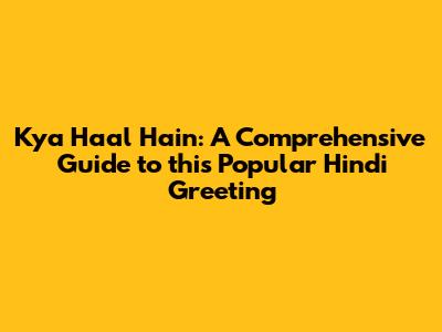 Understanding the Basics of "Kya Haal Hain"