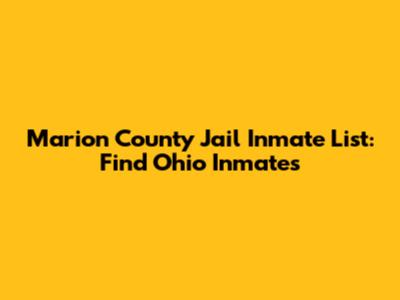 Marion County Jail Inmate List: Find Ohio Inmates