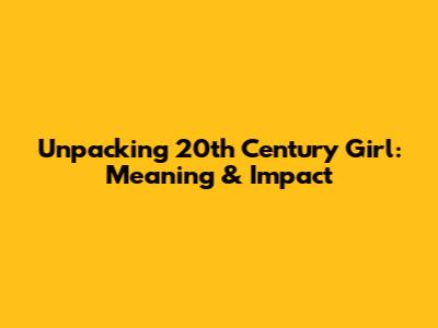 Unpacking '20th Century Girl': Meaning & Impact