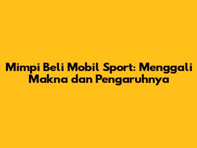 Guys, siapa di antara kalian yang pernah bermimpi membeli mobil sport? Pasti seru banget, kan? Mimpi memang seringkali menjadi dunia yang penuh misteri dan simbolisme. Salah satunya adalah mimpi membeli mobil sport. Mimpi ini bukan sekadar bunga tidur, lho. Ia bisa jadi cerminan dari keinginan, ambisi, atau bahkan ketakutan yang tersembunyi dalam diri kita. Dalam artikel ini, kita akan membahas secara mendalam tentang arti mimpi beli mobil sport, mulai dari makna umumnya hingga tafsirnya menurut berbagai sudut pandang, termasuk dalam perspektif Islam, primbon, dan bahkan kaitannya dengan togel. So, simak terus, ya!