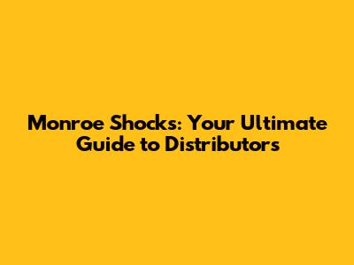 Navigating the World of Monroe Distributors