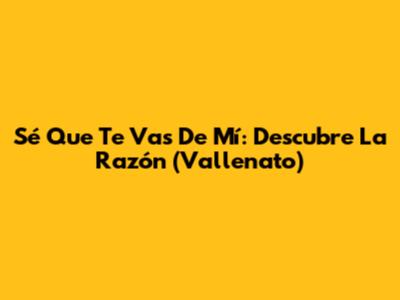 Sé Que Te Vas De Mí: Descubre La Razón (Vallenato)