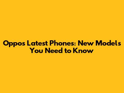 Oppo's Latest Phones: New Models You Need To Know