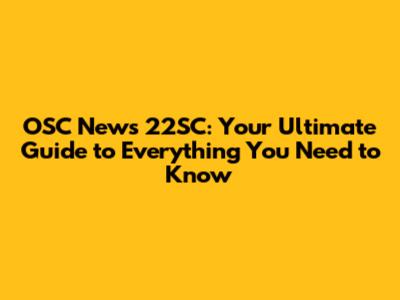 What is OSC News 22SC and Why Should You Care?