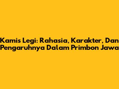 Kamis Legi: Rahasia, Karakter, Dan Pengaruhnya Dalam Primbon Jawa