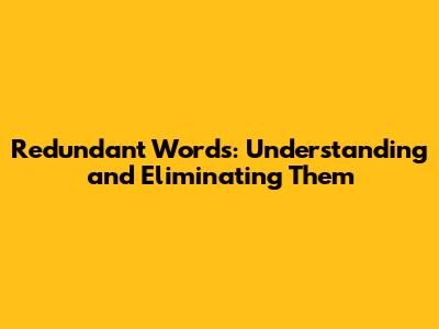 Redundant Words: Understanding And Eliminating Them