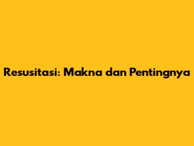 Resusitasi: Makna Dan Pentingnya