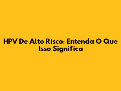 HPV De Alto Risco: Entenda O Que Isso Significa