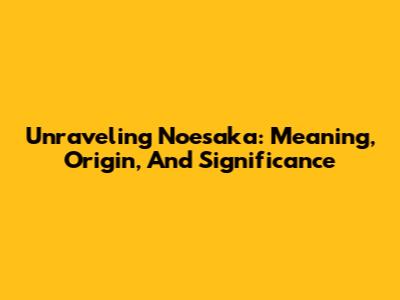 Unraveling Noesaka: Meaning, Origin, And Significance