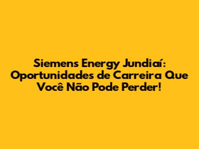 Siemens Energy Jundiaí: Vagas E Oportunidades Incríveis!