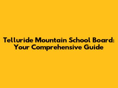 Telluride Mountain School Board: Your Guide