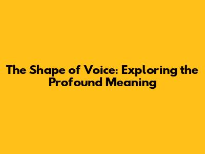 Unveiling the Core Meaning of 'The Shape of Voice'