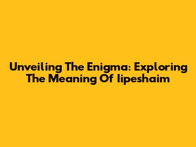 Unveiling The Enigma: Exploring The Meaning Of Iipeshaim
