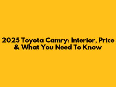 2025 Toyota Camry: Interior, Price & What You Need To Know