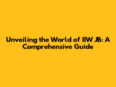 Unveiling The World Of IIW JB: A Comprehensive Guide