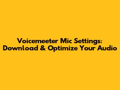 Voicemeeter Mic Settings: Download & Optimize Your Audio