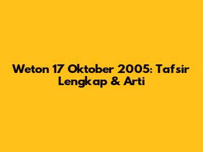 Weton 17 Oktober 2005: Tafsir Lengkap & Arti