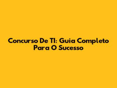 Concurso De TI: Guia Completo Para O Sucesso
